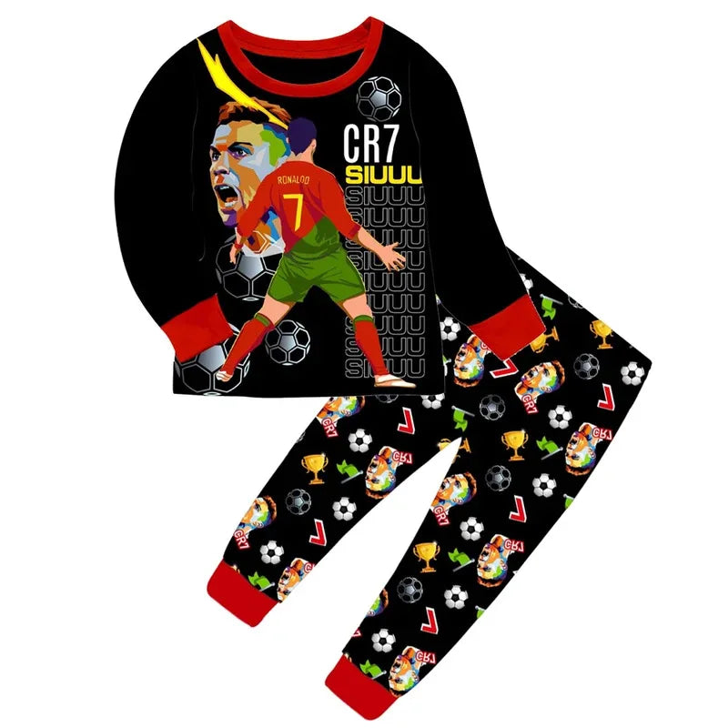 Children's Clothes Boy Girls Football Star Pajamas T-shirt Pants 2pcs Comfortable Long Sleeves Homewear Siuuu CR7S Kids Clothing