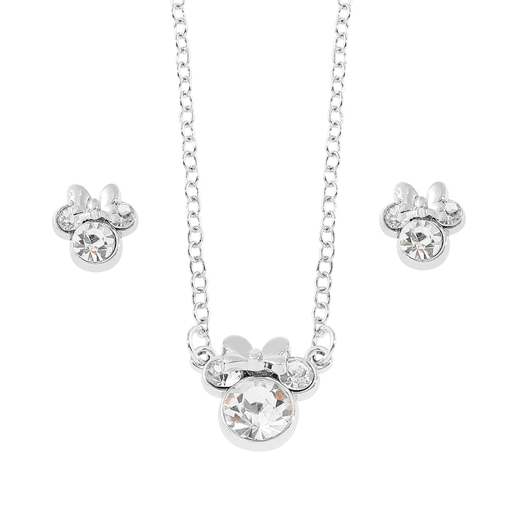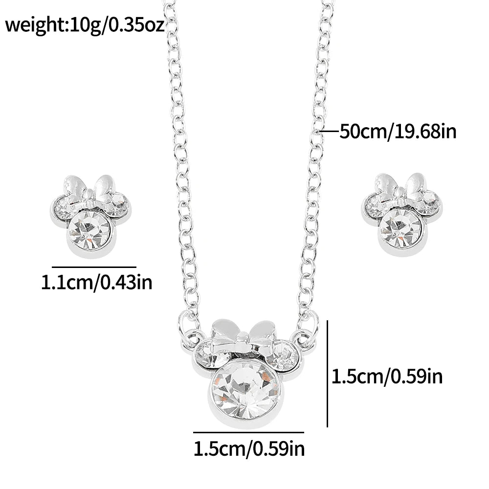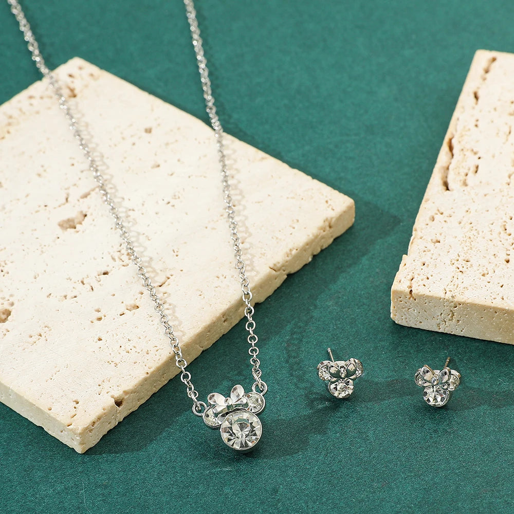 Disney Simple Shiny Zircon Minnie Pendant Necklaces Earrings for Women Girls Jewelry Set Collar Accessories Gift
