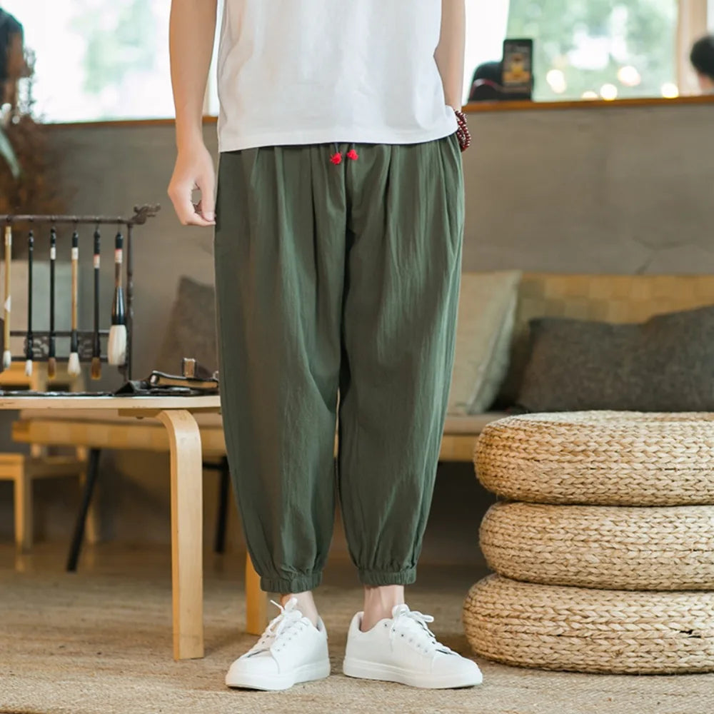Men's Cotton and Linen Harem Pants Casual Loose Oversize Beach Pants Chinese Style Wide Leg Trousers Joggers Men Summer